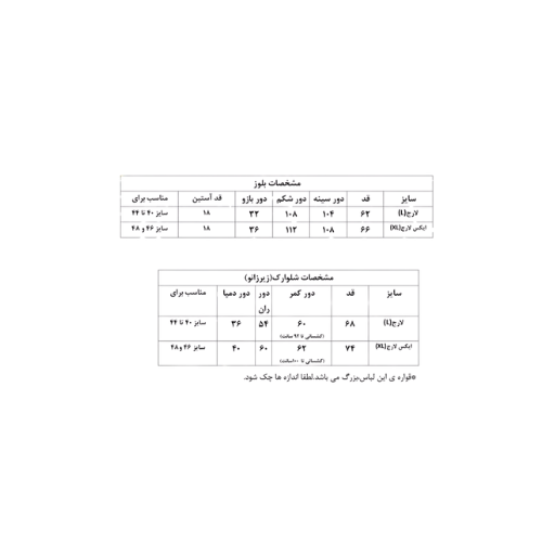 ایکس لارج(منسب برای 46 و 48) ,لارج(مناسب برای 40 تا 44) |