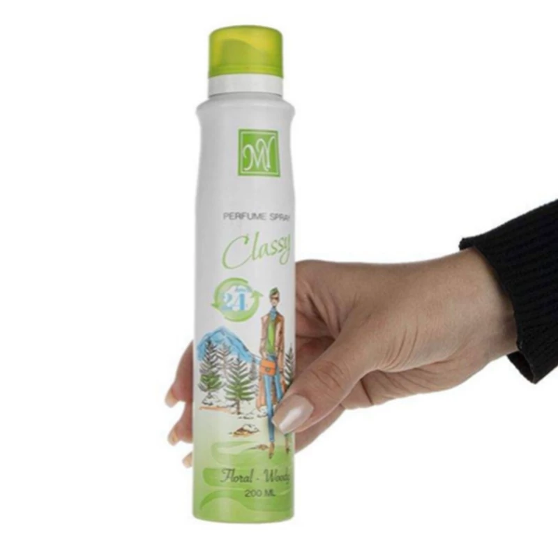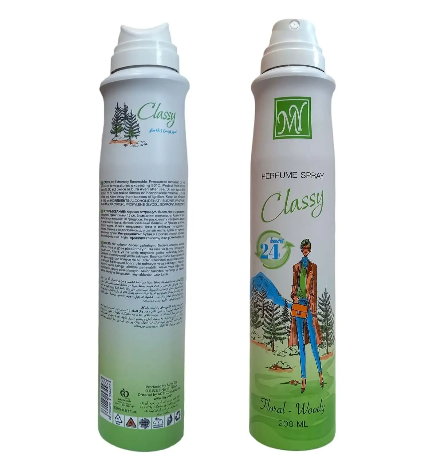 اسپری بدن زنانه مای مدل Classy ۲۰۰ml| رایحه گلی و چوبی با ماندگاری ۲۴ ساعته