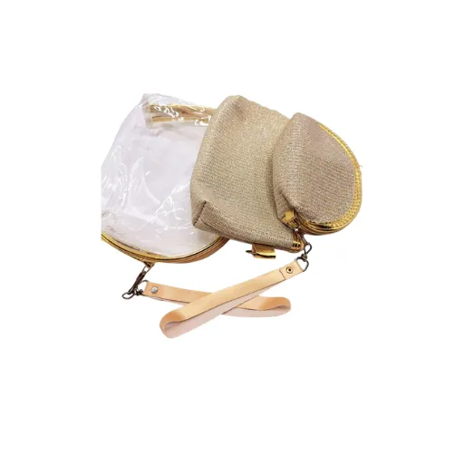 پک کیف آرایش 3 تایی طلقی شایندار طلایی