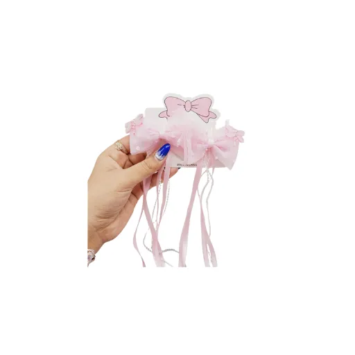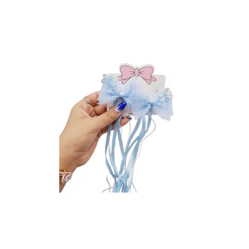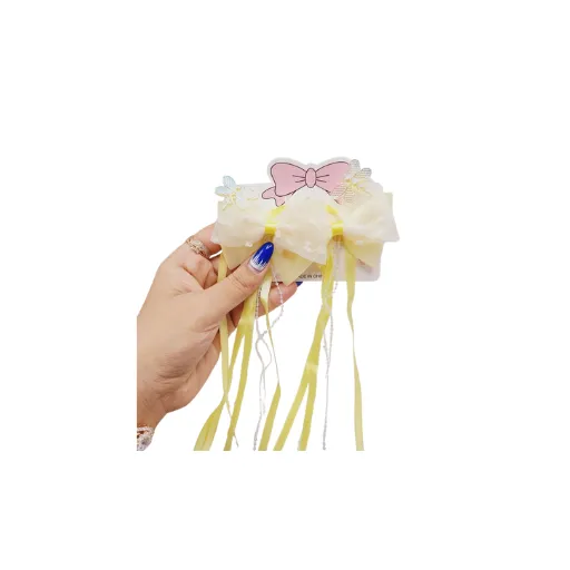 ست 2 تایی گیره مو پاپیونی همراه با آویز نواری و نگیندار