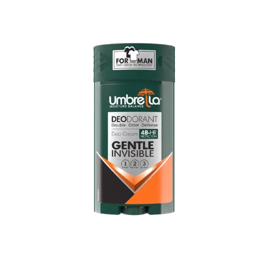 ملایمتر، پوستدوستتر و با رایحه مطبوعواستیک مردانه جنتل سبز آمبرلا با بافتی کرمی و جذب سریع، گزینه ای عالی برای آقایانی است که به خوشبو بودن، نرمی پوست و کاهش تعریق اهمیت میدهند. این محصول تا 48 ساعت از بروز بوی ناخوشایند بدن جلوگیری کرده و با ترکیبات آنتی باکتریال خود تا 97 درصد مانع ایجاد بوی بد میشود. بافت نرم و کرمی آن بدون اینکه روی لباس لکه ای ایجاد کند، پوست زیر بغل را خنک، مرطوب و لطیف نگه میدارد. استیک جنتل سبز همچنین فاقد آلومینیوم، الکل و پارابن است و برای انواع پوست، حتی پوست های حساس، کاملا مناسب محسوب میشود.